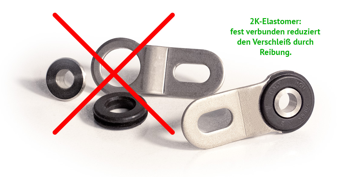 Die Lösung ist ein 2K-Verbindungselement zur Entkopplung von Vibrationen: